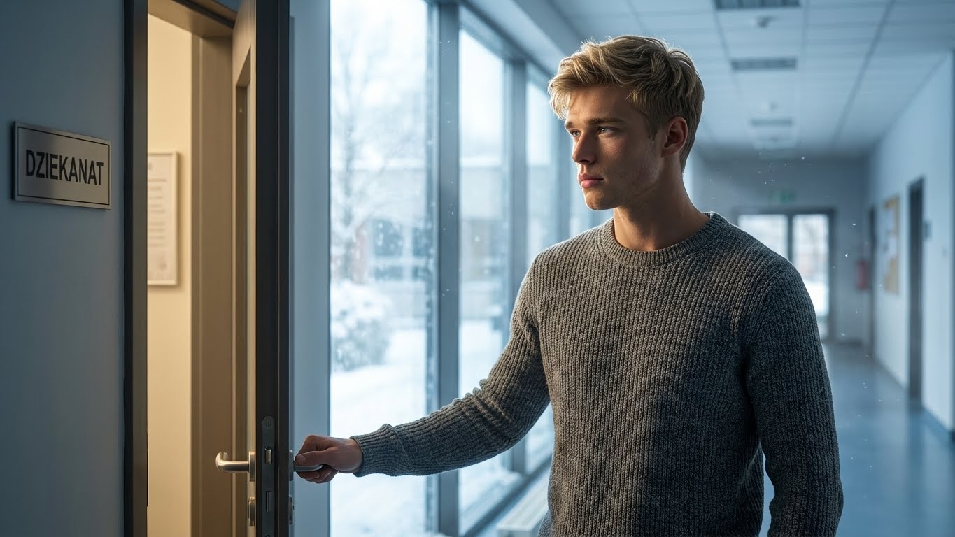 Patryk nie rozumiał, o co chodziło, ale stawił się przed dziekanatem i zapukał do środka.