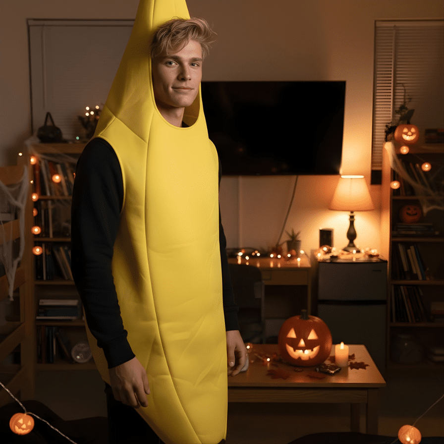 Powoli sala wypełniała się studentami ze wszystkich kierunków, a więc pojawiały się wampiry, czarownice, kosmici i inne straszydła. Oczywiście w końcu pojawił się też i banan.