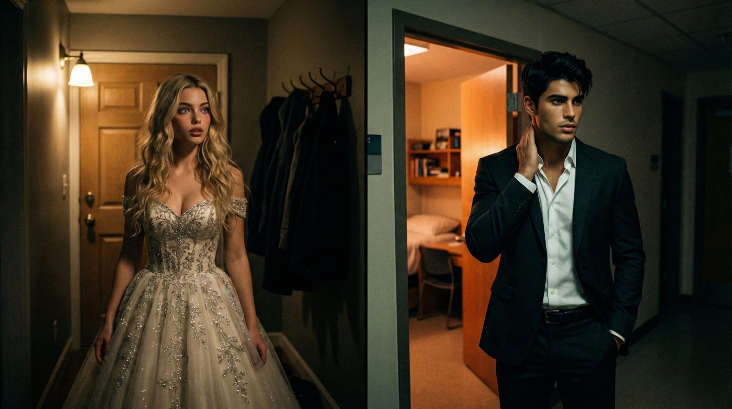 Auri szykowała się z dziewczynami, a Patryk czekał na nią w swoim pokoju zawiązując sobie krawat przed lustrem.
