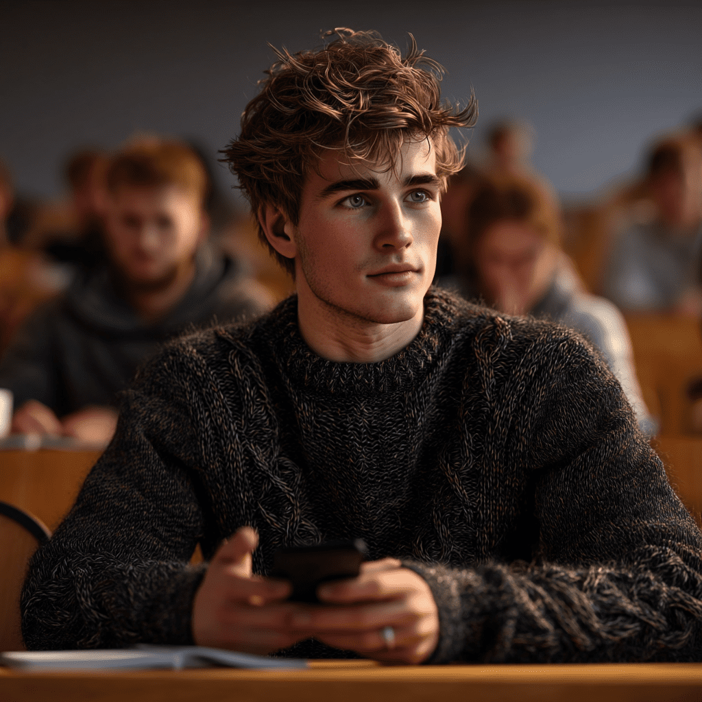 Wysiadł pewnym krokiem z samochodu, emanując swoją nonszalancją. Blondyn w czarnych spodniach i białej podwiniętej do łokci koszuli z zarzuconą na ramię kurtką i w przeciwsłonecznych okularach. Zamknął machnięciem ręki drzwi auta, czarnego nowiutkiego Volkswagena, a odchodząc parę kroków dopiero kluczykami zablokował samochód nawet się nie odwracając. Skąpany w promieniach słońca ruszył w stronę Audytorium Maximum.
