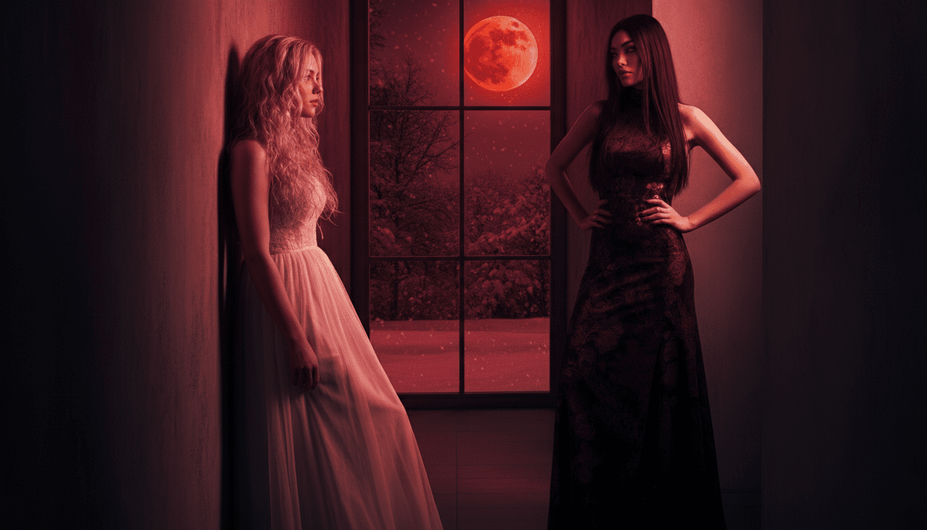 Wtedy nagle drzwi od łazienki otworzyły się i wyszła z nich Geozja. Uśmiechała się przebiegle podchodząc do niej w czarnej sukience i z mocnym makijażem.